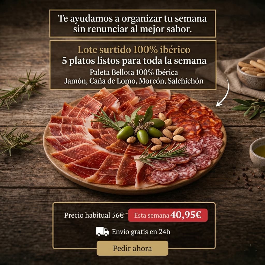 - Jamón de Bellota Ibérico: el sabor más noble, con un veteado perfecto y ese punto dulce de la bellota.