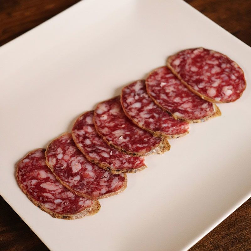 Ofrecemos un producto que por calidad de sus componentes y saber hacer en su elaboración y aliño nos garantiza un mundo sobresaliente de sabor y olor en su degustación. Nos encontramos posiblemente en una nueva forma de degustar un producto base tan extraordinario como es el cerdo ibérico. La Serranía de Macías les ofrece este salchichón como resultado de su curación en nuestras instalaciones y en la mejor tradición.